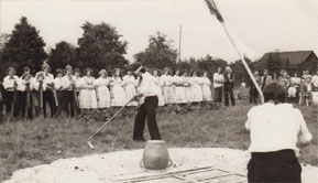 noch das Hahnschlagen mit zum Festprogramm. Unverheiratete Burschen