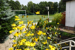 Fußballvereins. Hell hebt sich rechts im Hintergrund das