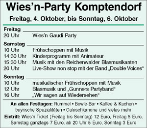 in Tracht? Das kann nur bei der Gaudi-Wiesn Party in Komptendorf