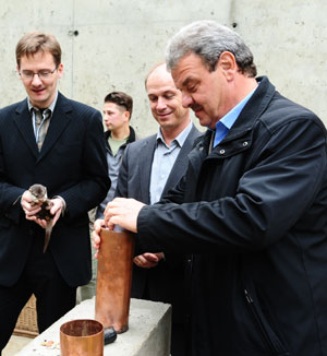(und Pfoten) voll zu tun bei der Grundsteinzeremonie für