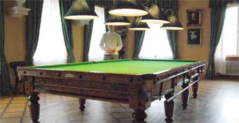 Billardtisch aus der Mitte des 19. Jahrhunderts und eine ebenso alte Lampe