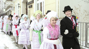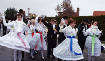 Tracht durch die Stadt, fröhlich singend wie hier vor dem Wendischen