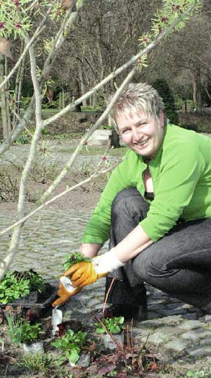 Karola Komolka half den Mitarbeitern der Grüne Gärten Grünanlagen
