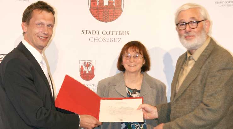Eintrag in die Ehrenchronik der Stadt Cottbus und bedankt sich für