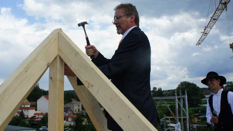Hain am letzten Freitag den letzten Nagel in die Dachkonstruktion des