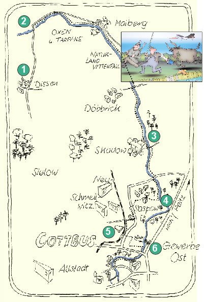 beschildert) und die einst fast schnurgerade Spree mäandert
