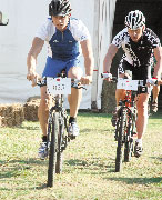 Zelt, in dem abends gefeiert werden wird, rasen die Radsportler.