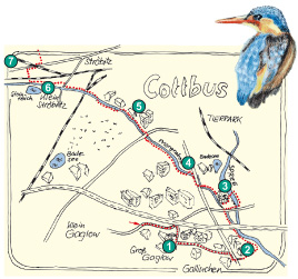 direkt zum Spreedamm, dem wir bis zum Priorgraben folgen.