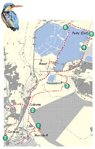 Bald erreichen wir den Bahnhof Peitz-Ost (5). Es ist ein Bilderbuch-Bauwerk