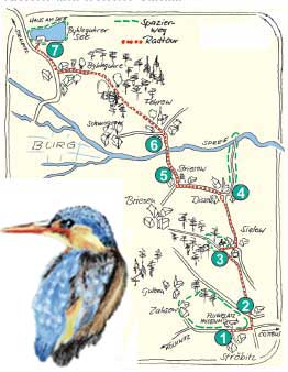 nach Fehrow und queren bald die Spree (6). Hier beginnt eben ein