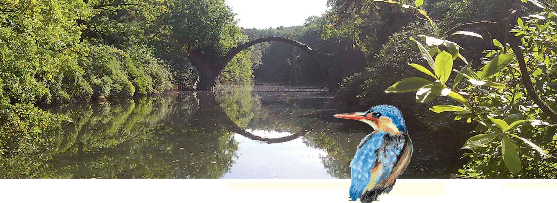 Bild oben: Pückler hatte Muskau schon gegen Branitz getauscht, als in der Nähe seines früheren Sitzes aus romantischer Großgrundbesitzer-Laune der Kromlauer Park entstand. Die Teufelsbrücke über den Rakotzsee (1860) ist beliebtestes Fotomotiv