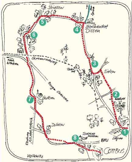 und mit viel Service. Von hier an muss Cottbus noch an Radwegen