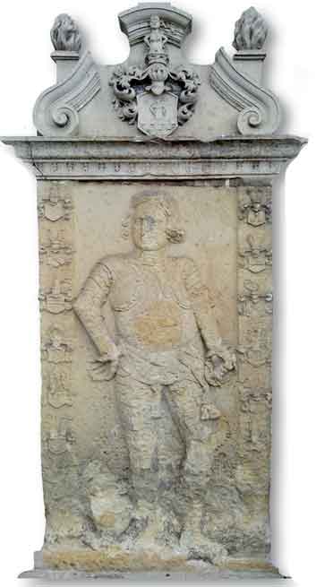 plastisch das lebensgroße Relief von Seyfried von Loeben.